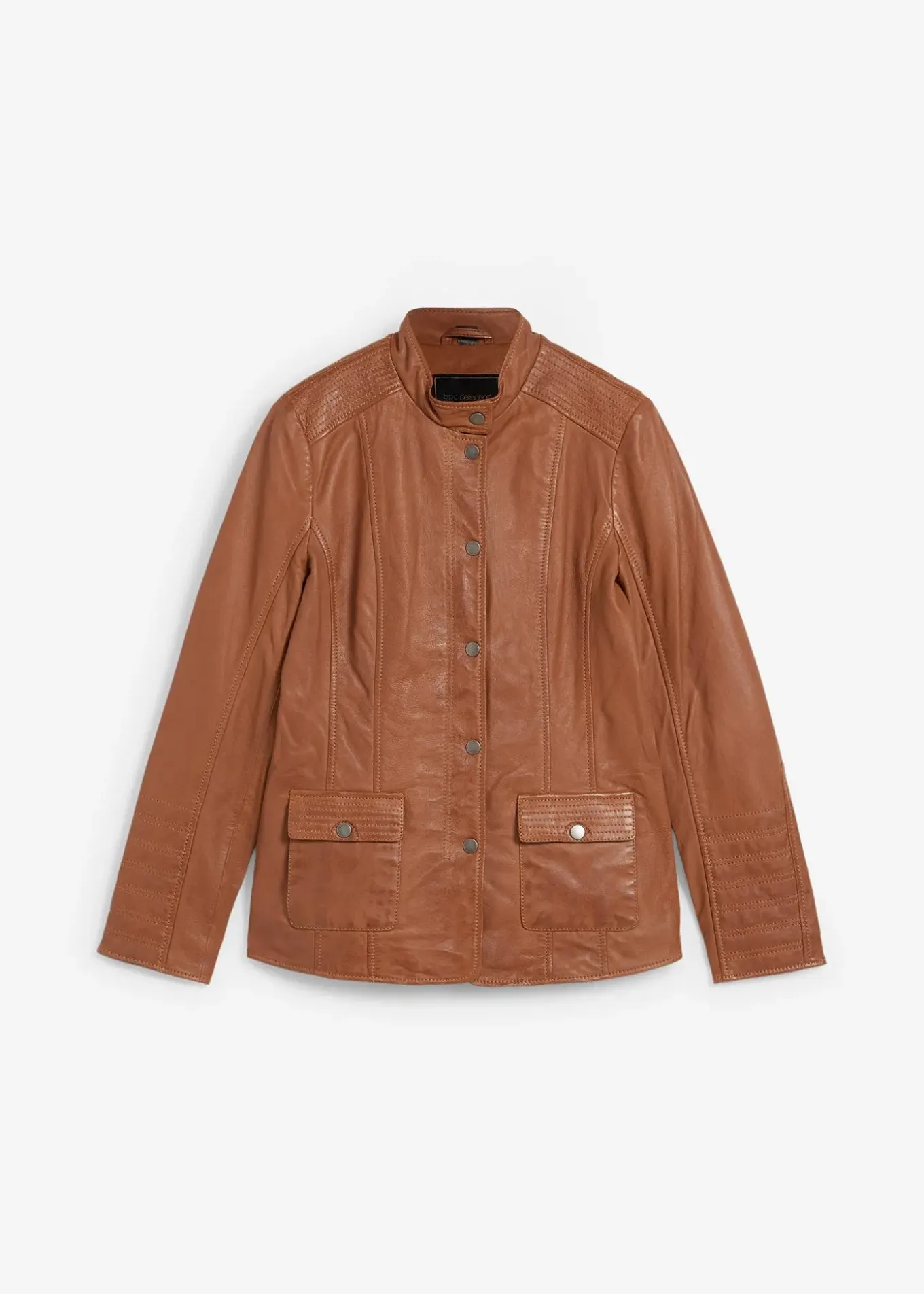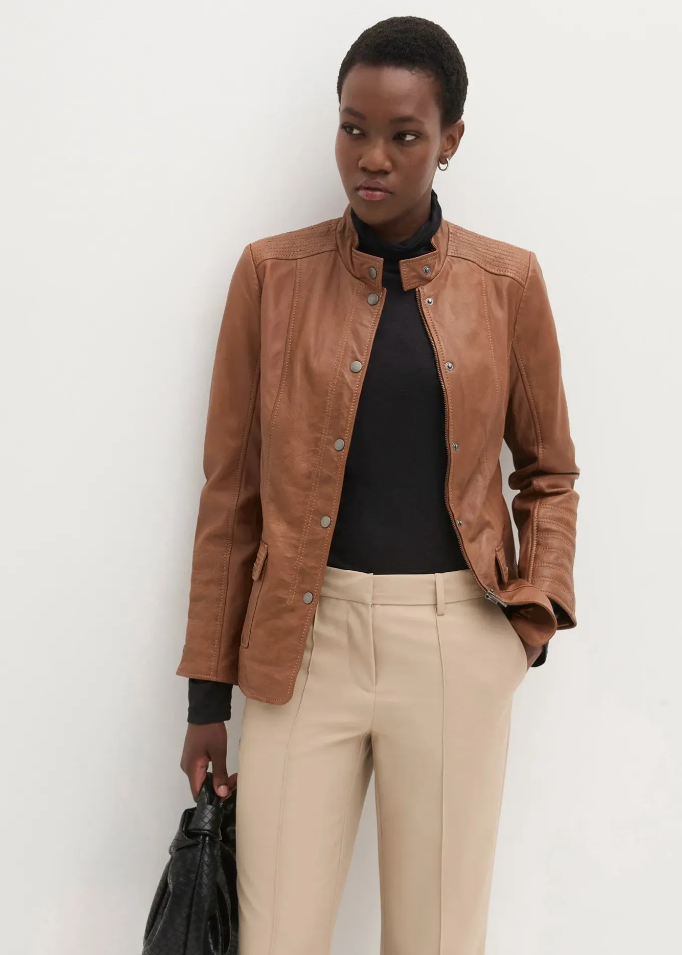 Veste en cuir classique à col montant et finitions soignées