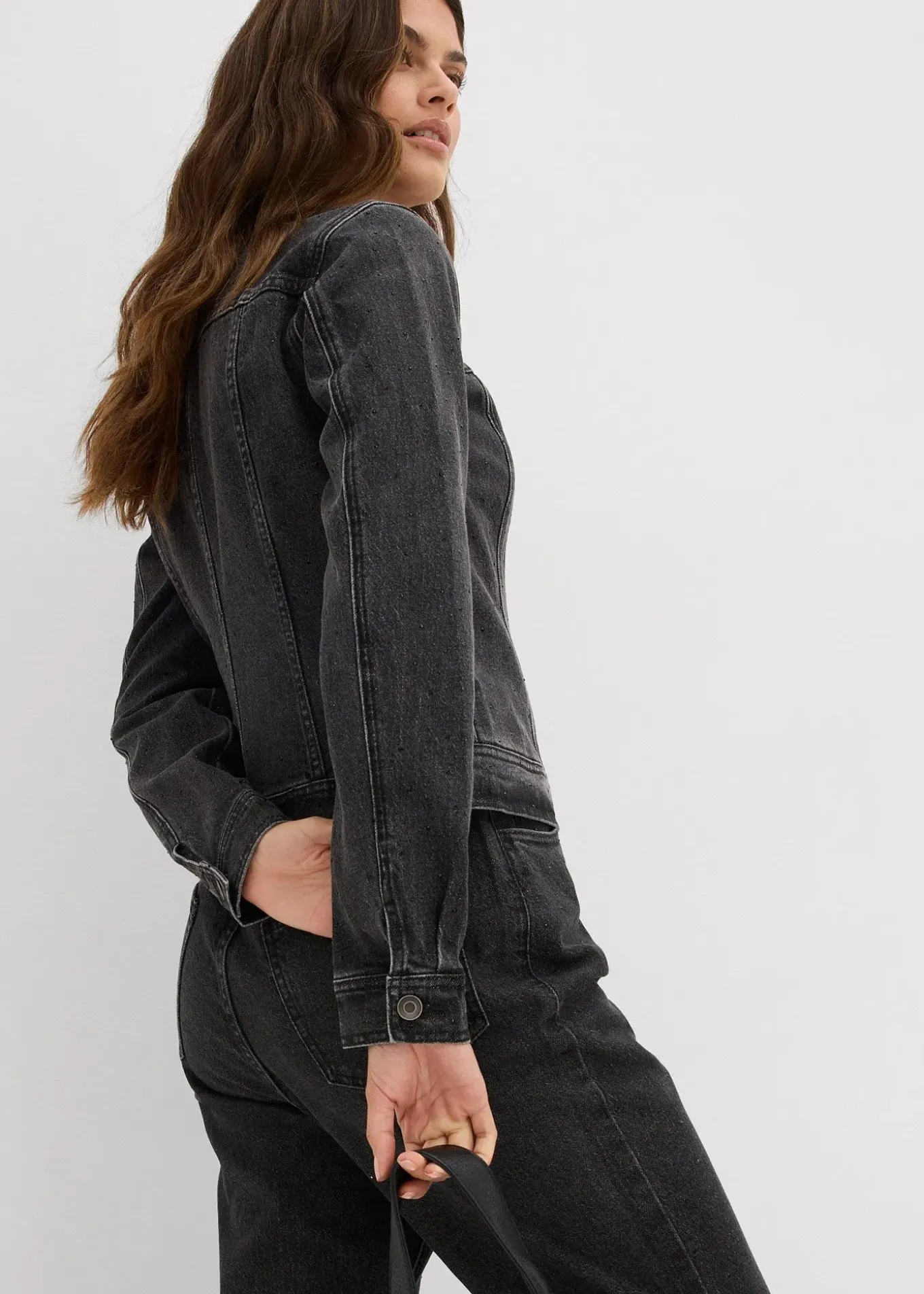 Veste boxy en jean à strass