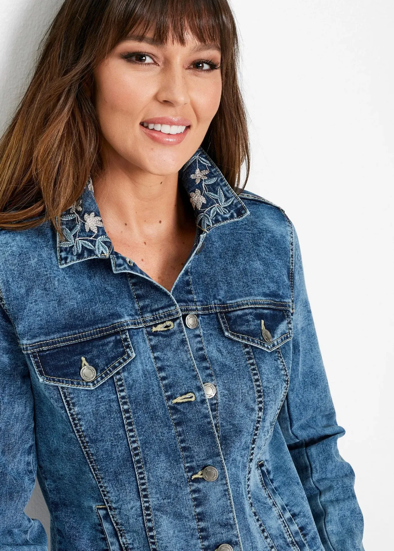 Veste en jean moderne et fantaisie avec broderie florale de Premium