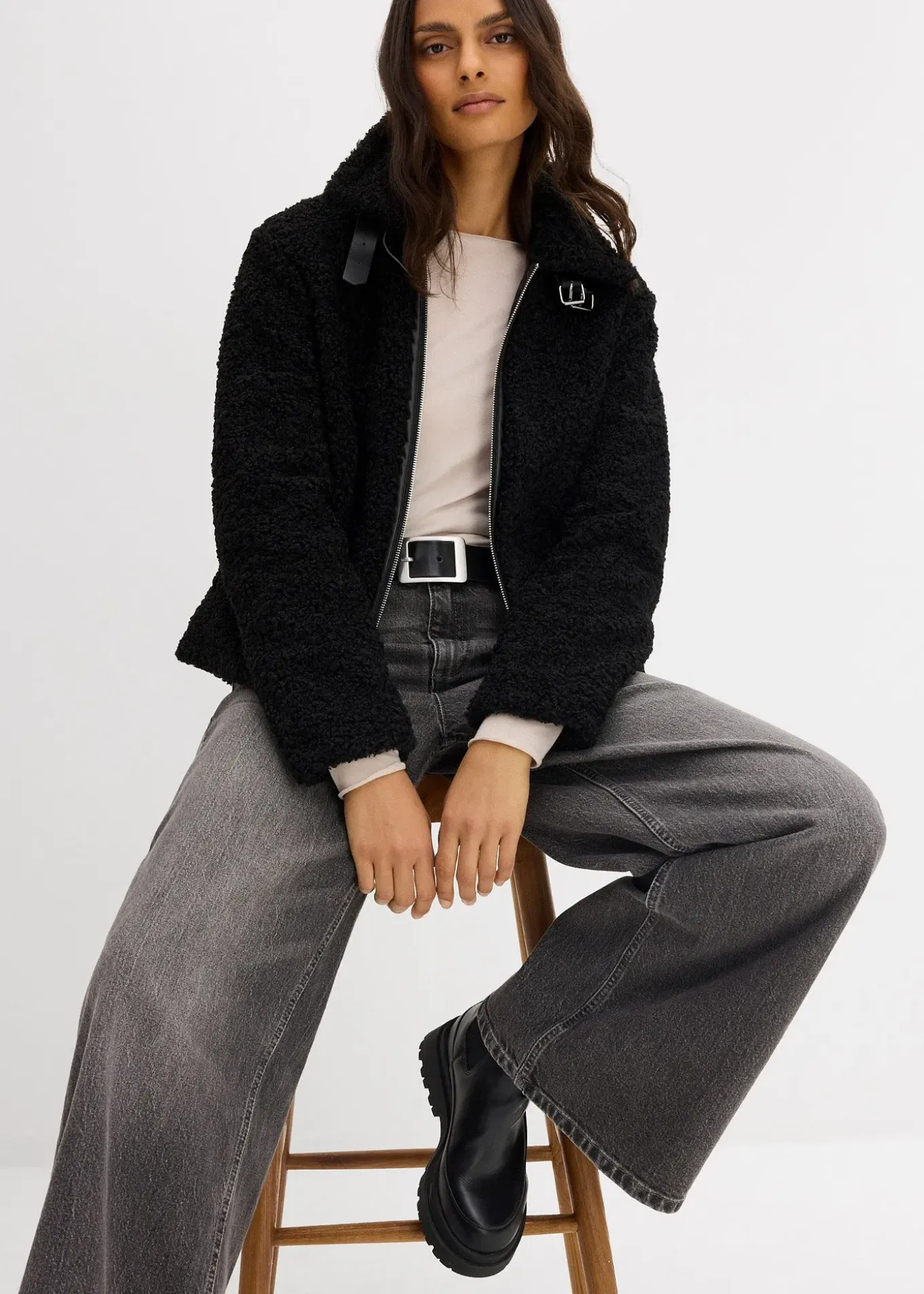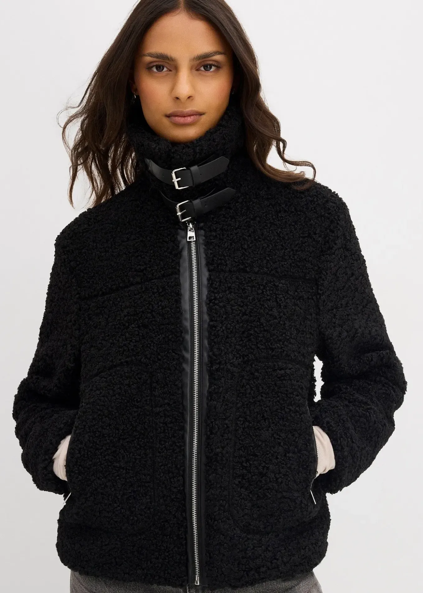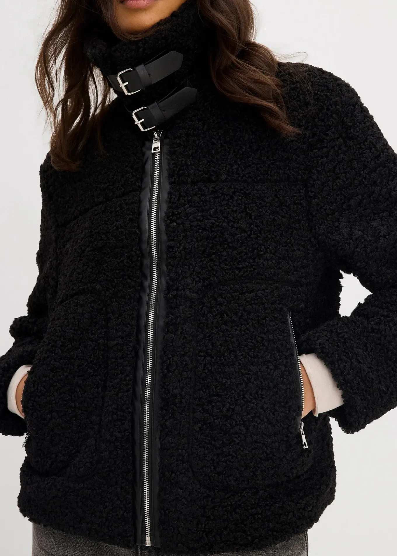 Veste mode en peluche avec poches sur les côtés