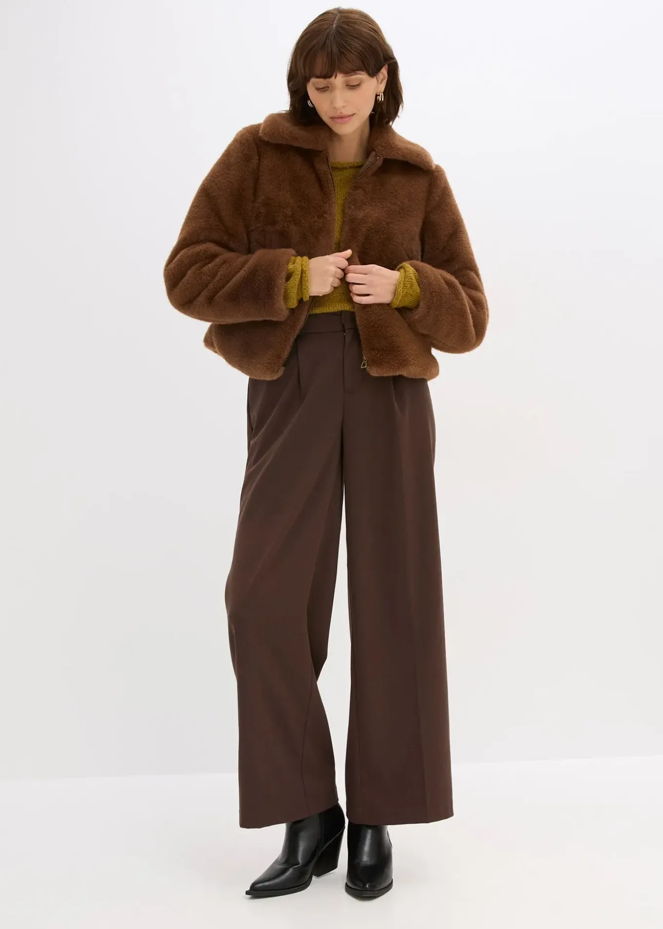 Veste courte et mode en peluche, zippée devant