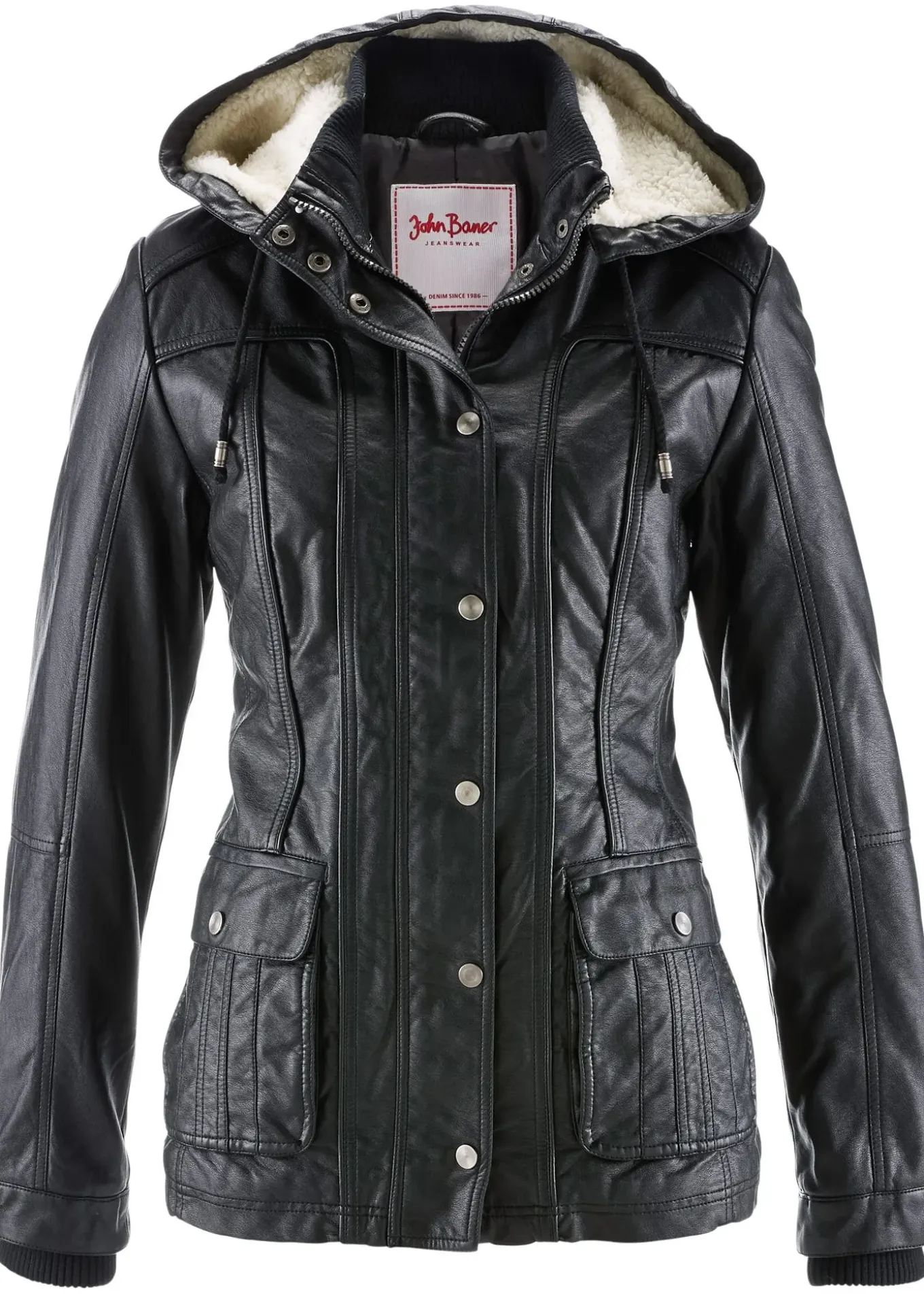Belle veste décontractée de la marque John Baner pour le quotidien. Capuche amovible avec doublure douce en sherpa. Finitions côtelées sur le col et aux manches. Zip sous rabat pressionné. Poches plaquées à rabat devant et poches latérales.