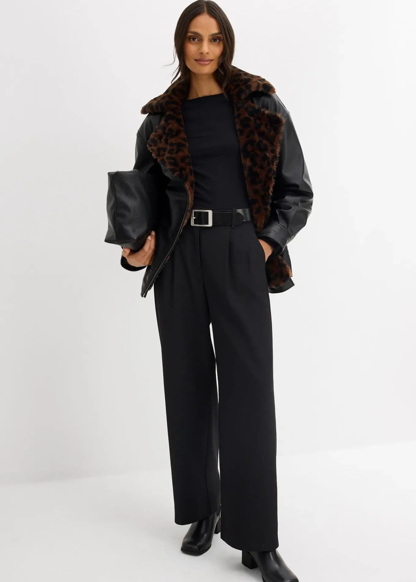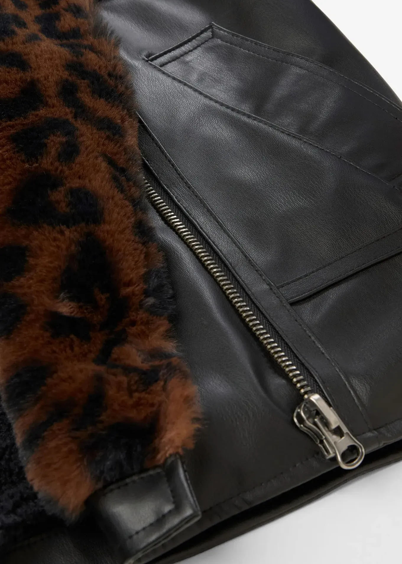 Veste oversize enduite, aspect vieilli tendance, avec doublure peluche léopard