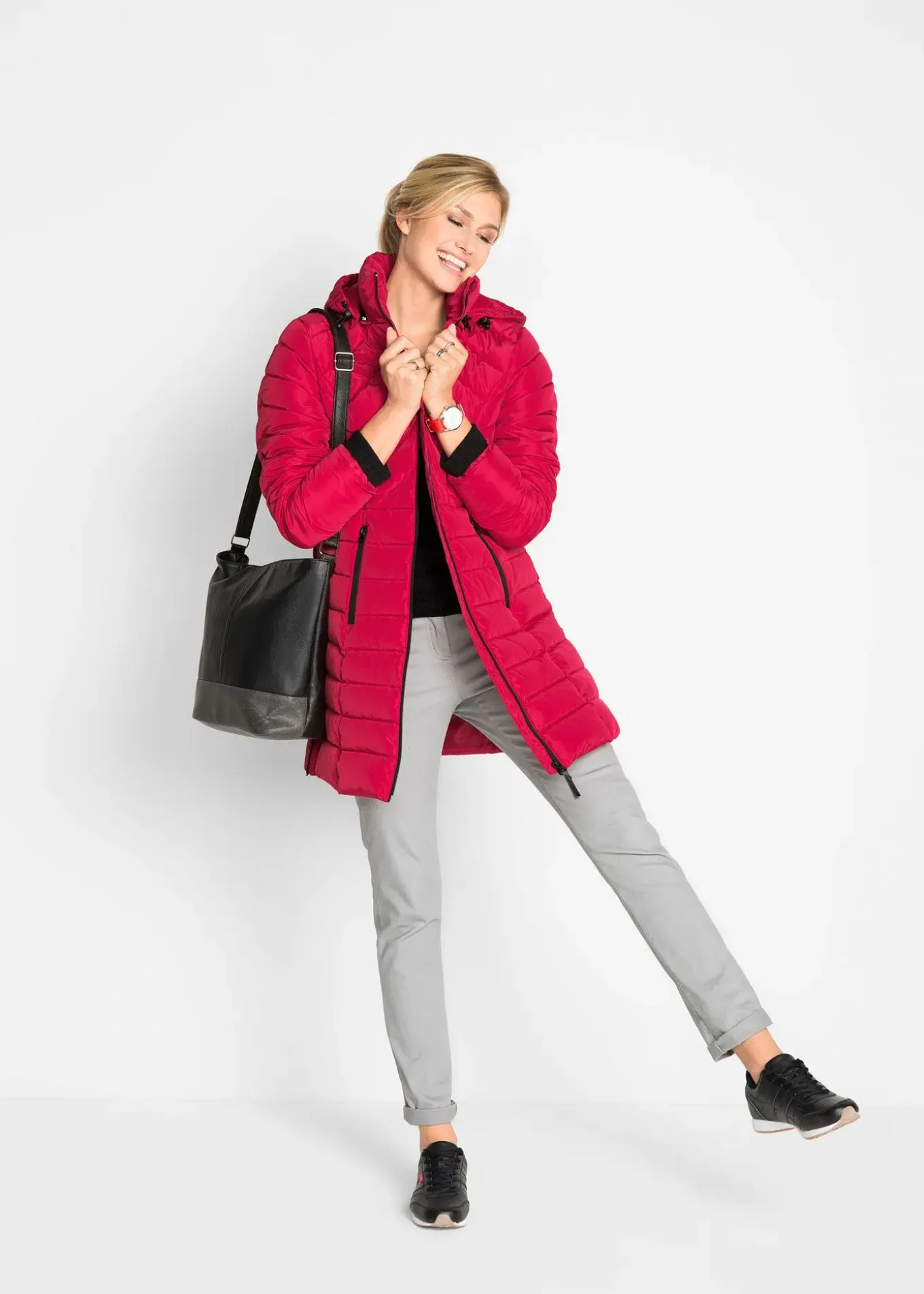 Veste matelassée de bpc à col court, confortable et décontractée. Longueur agréable, capuche amovible et cordon de serrage, fermeture zippée double sens. Fermetures zippées sur le côté pour élargir la veste au niveau des hanches. Poignets contrastants et côtelés.