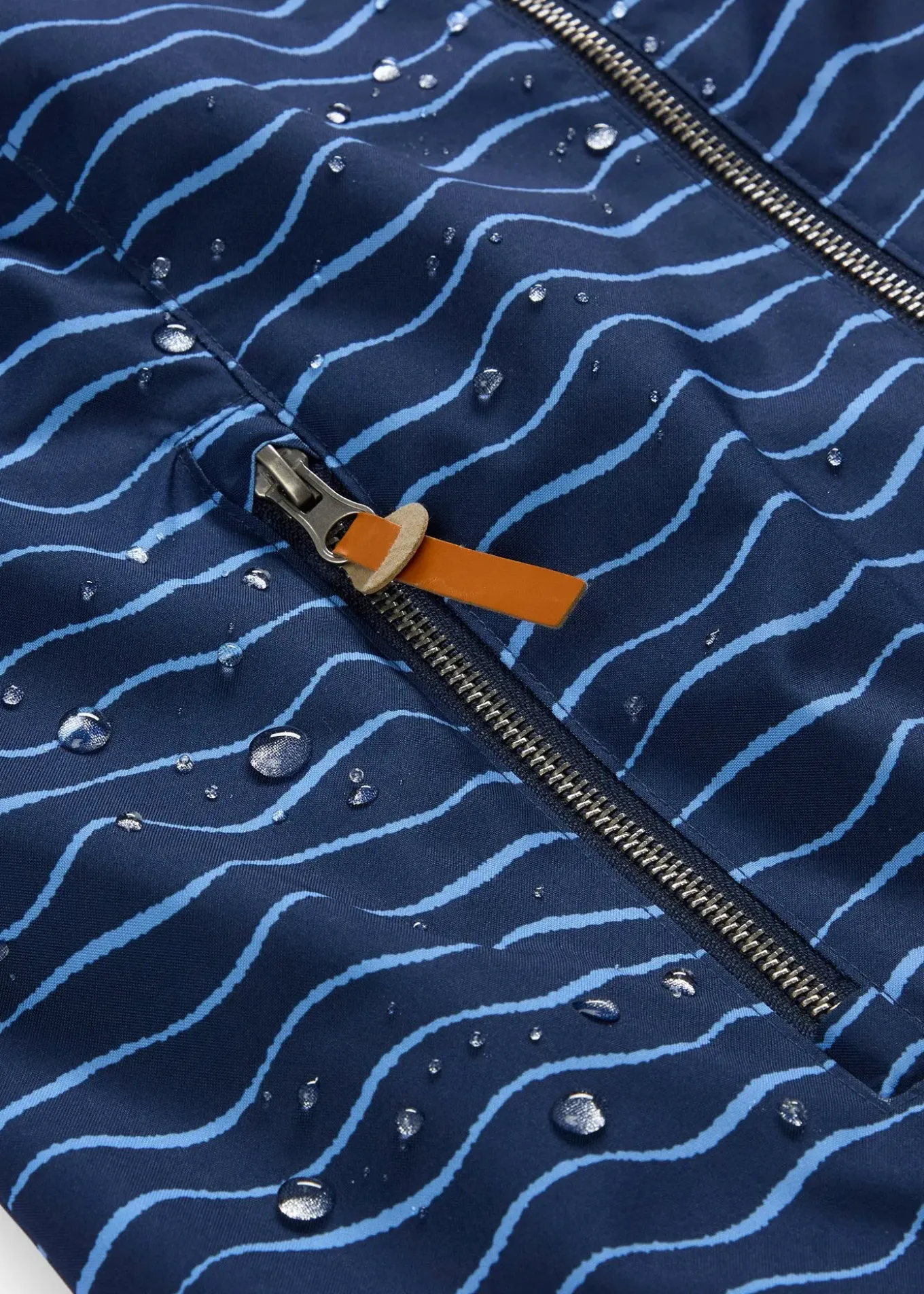 Veste fonctionnelle avec capuche amovible et imprimé vague, mitaines, fermeture zippée avec protège-menton, colonne d’eau 3000mm, long. env. 74 cm.
