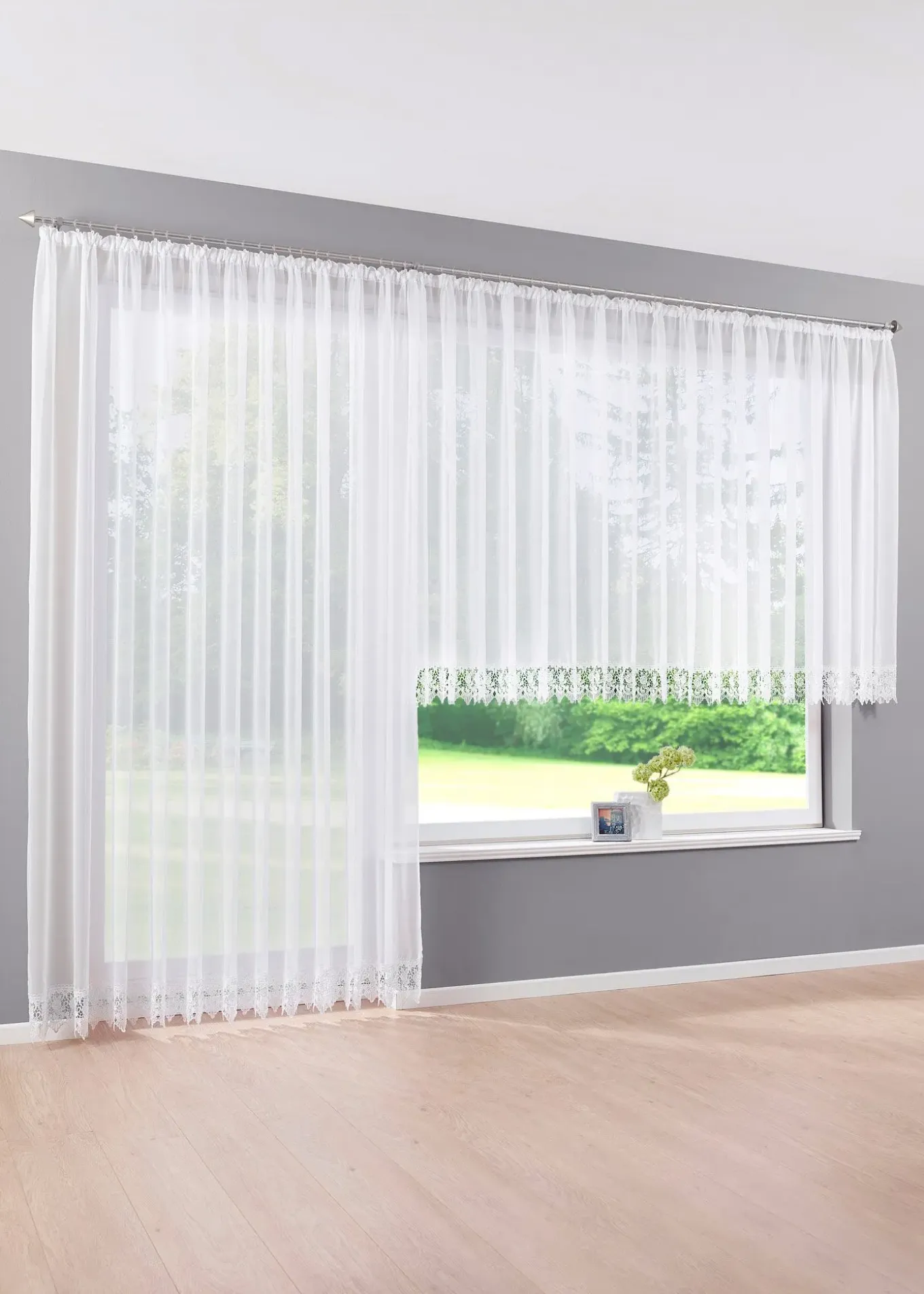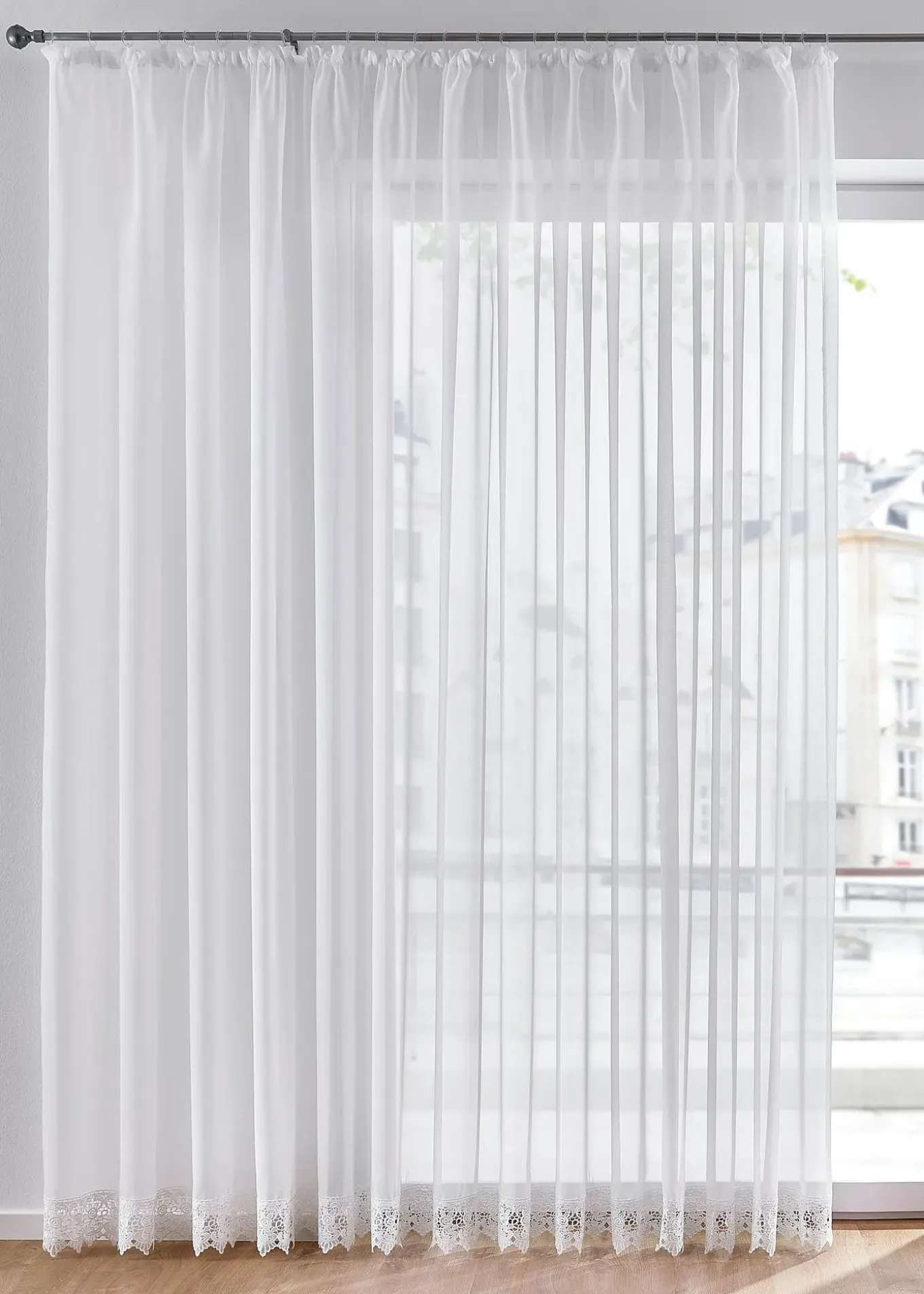 Voilage transparent à bordure crochet décorative