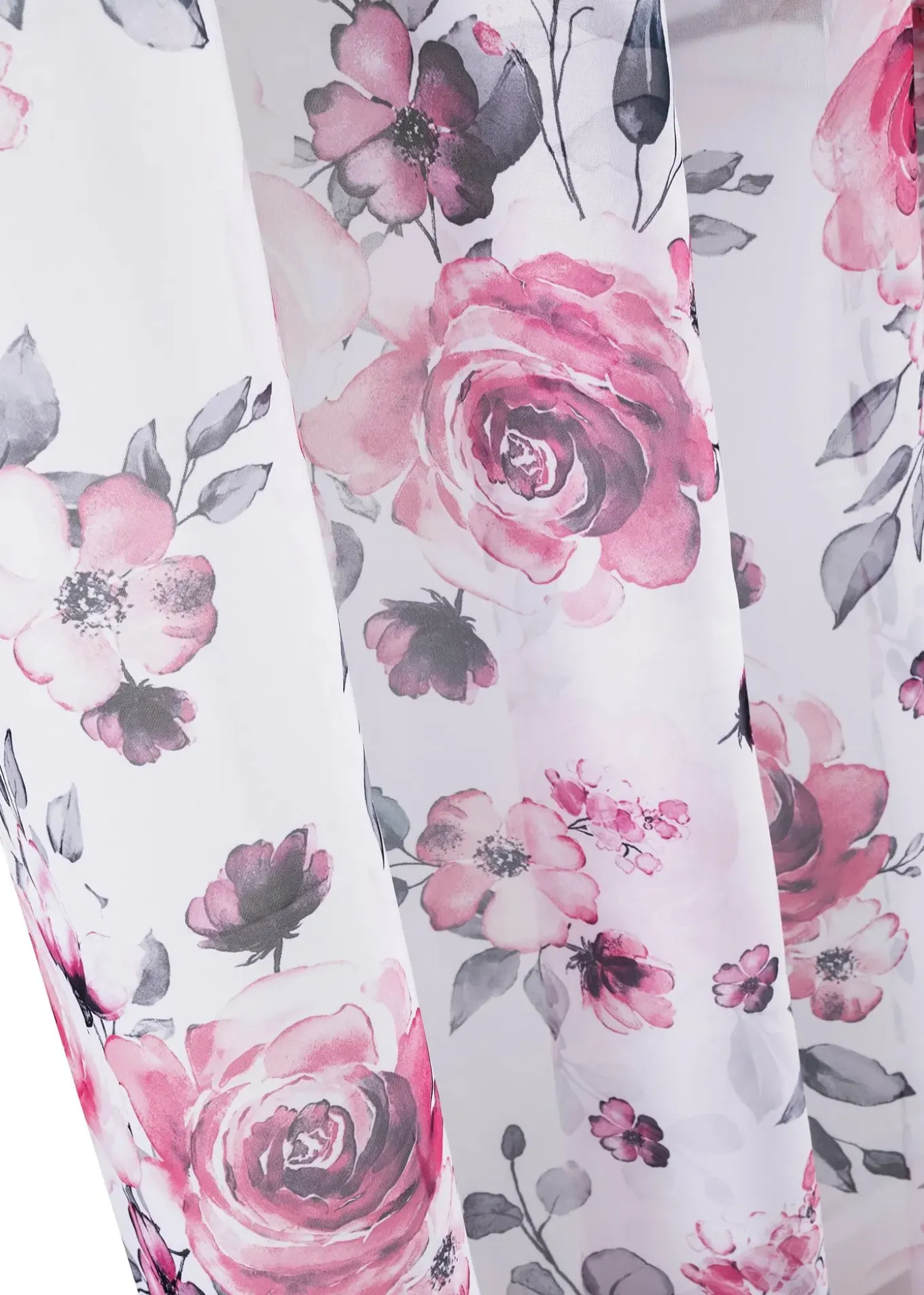 Voilage au tombé léger avec un magnifique imprimé floral. Voile fin qui laisse entrer la lumière dans votre pièce tout en protégeant légèrement des regards indiscrets. Les tonalités sont printanières.