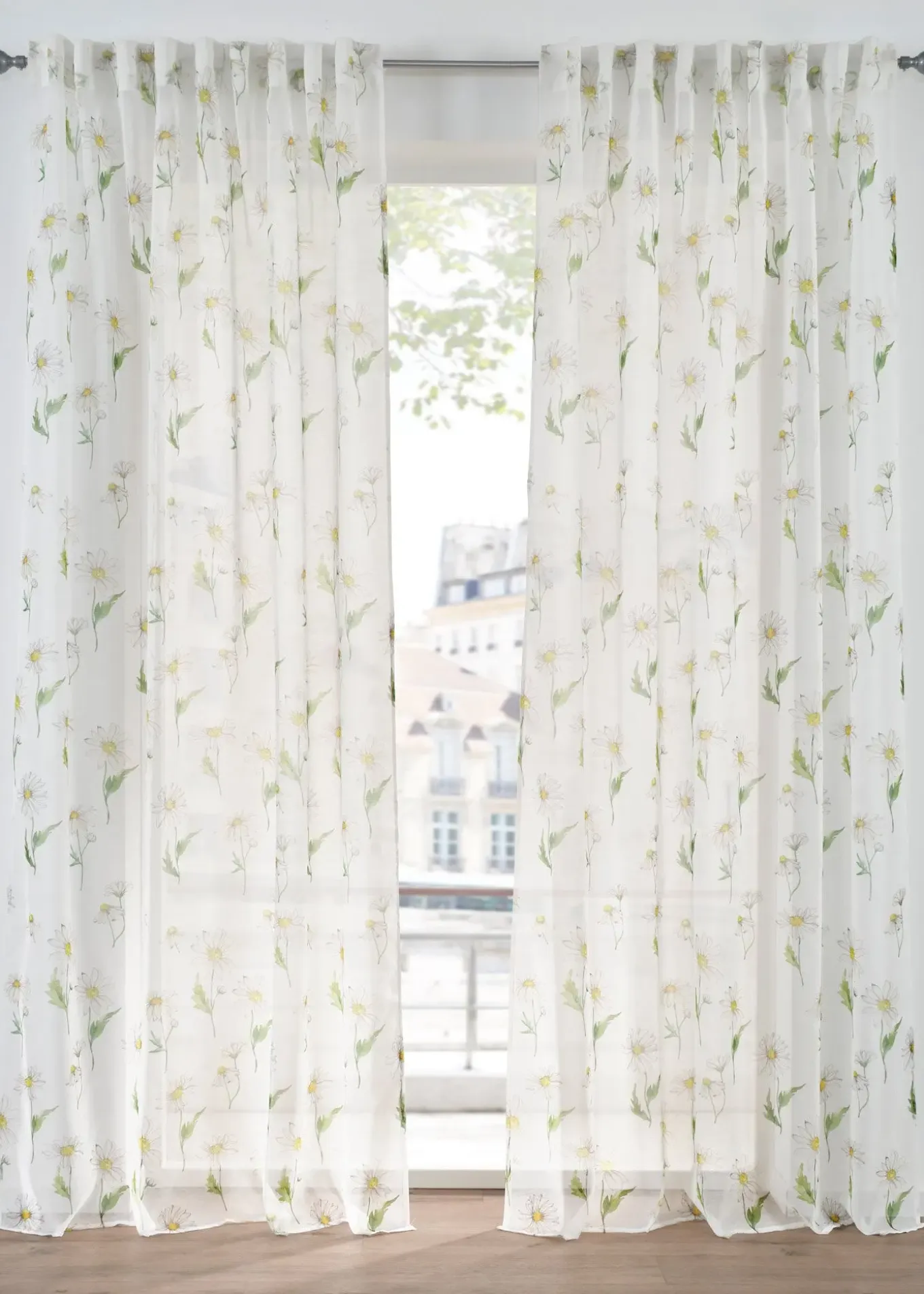 Ce voilage se distingue par son ravissant imprimé floral dans des tons verts et jaunes. Il apporte une touche de fraîcheur dans n’importe quelle pièce et s’accorde parfaitement avec différents styles d’intérieur. Idéal pour créer un cadre lumineux et convivial, ce voilage apporte du dynamisme à votre intérieur.