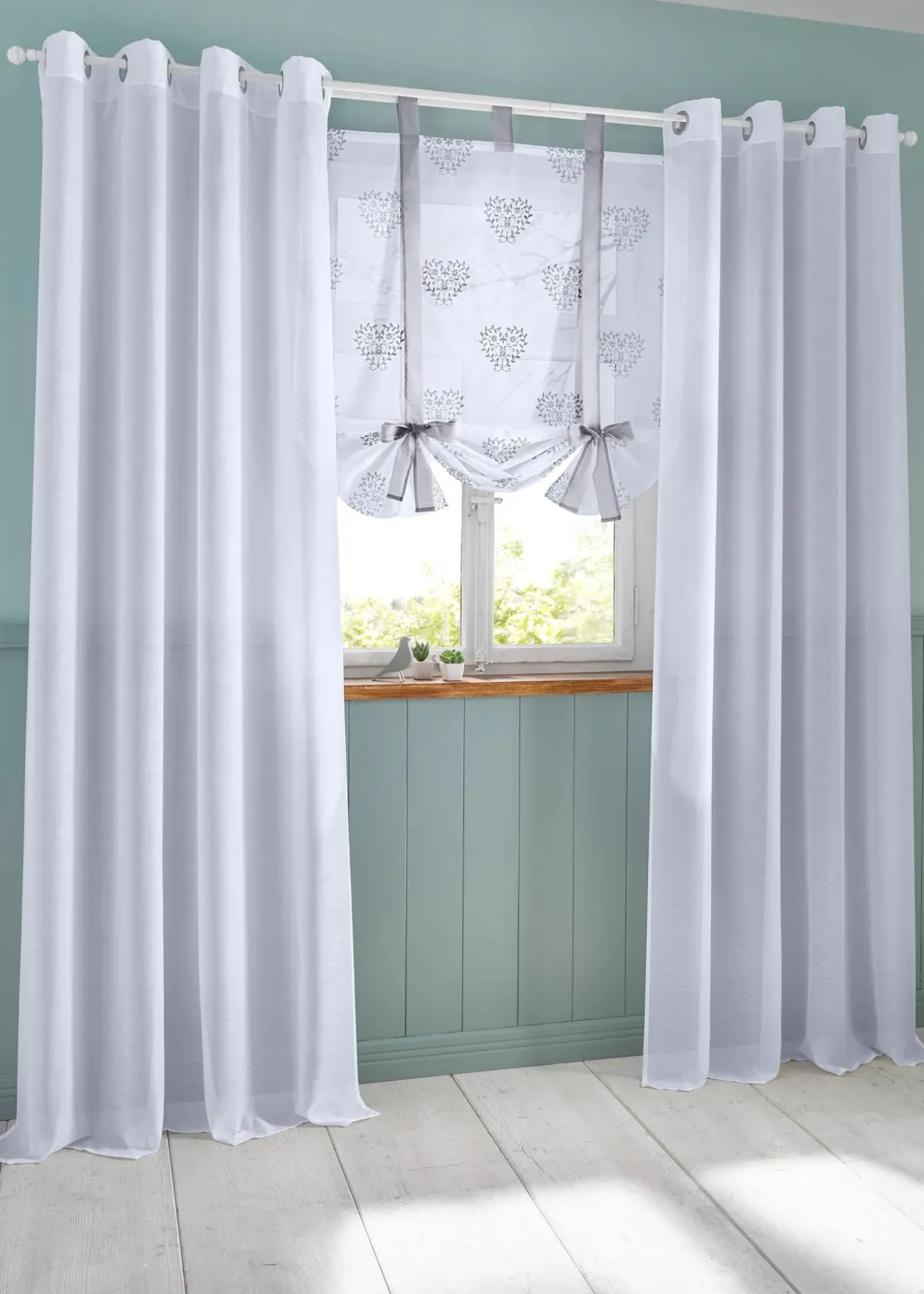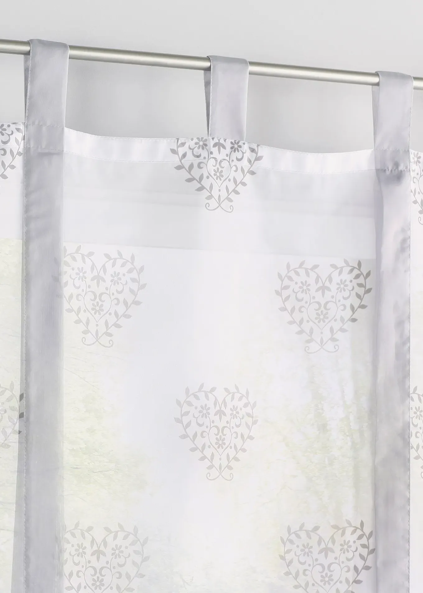 Voilage à nouer transparent à imprimé cœurs devant pour les fans du style cottage. Rubans colorés assortis pour le fixer à la hauteur voulue, nouer et c’est prêt !