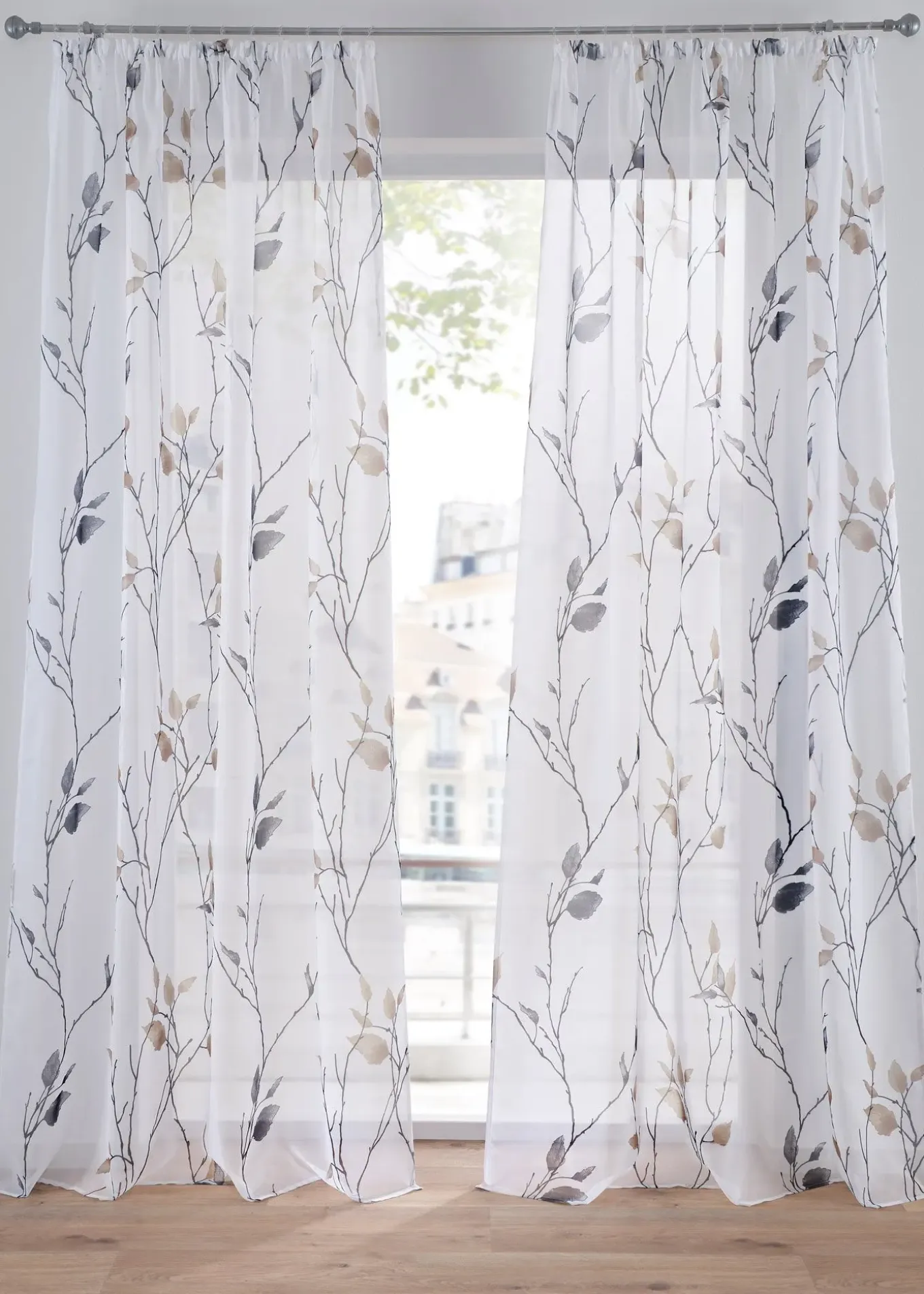 Imprimé floral façon aquarelle sur voile transparent. Les tonalités douces et la transparence de ce voilage apportent de la lumière et de la convivialité à votre pièce. Ce voilage est confectionné en tissu facile d’entretien.