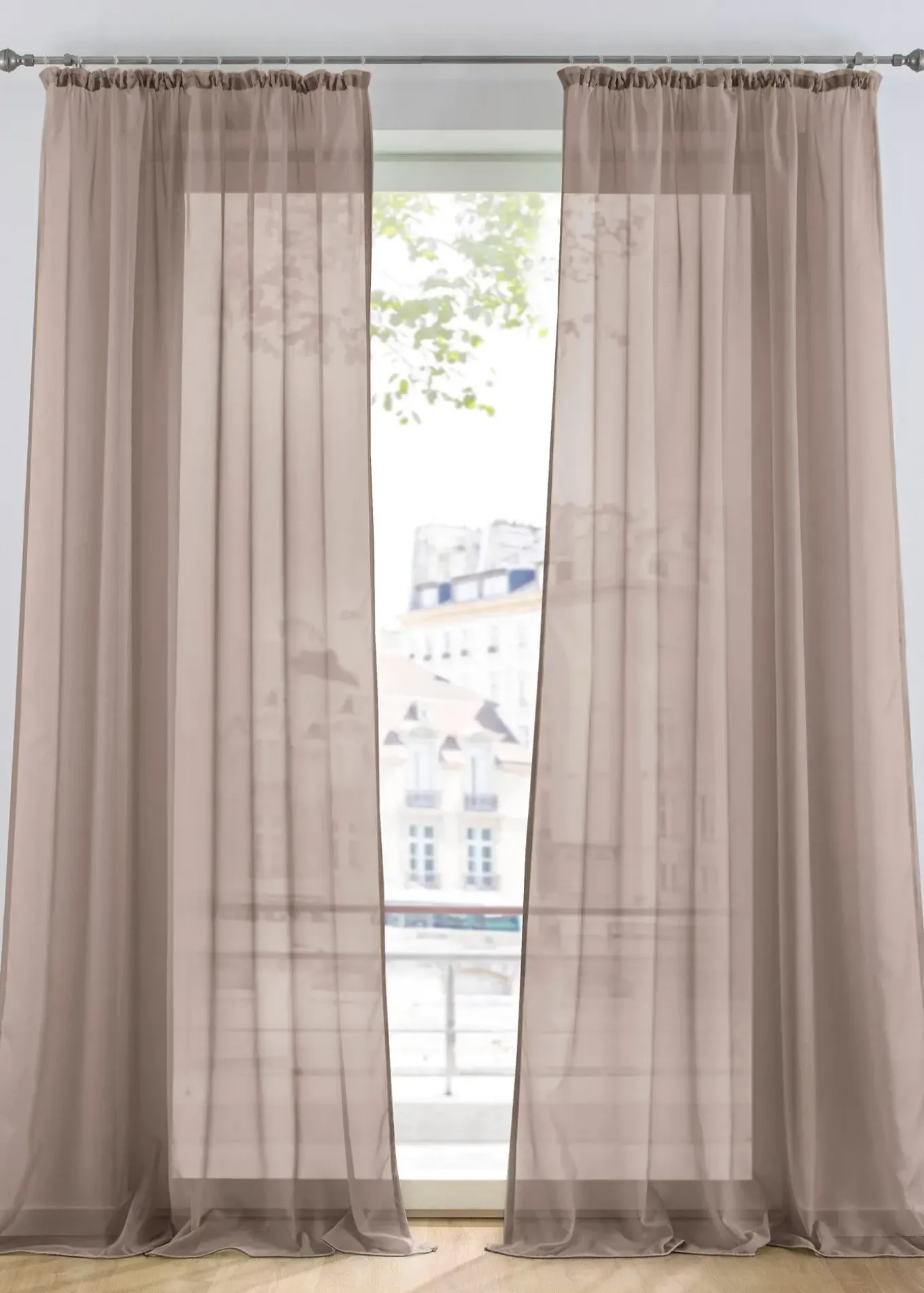 Voilage transparent et discret qui décore instantanément votre fenêtre. Son tissu à fils très fins se démarque par son tombé fluide et aérien. Facile d’entretien et lavable en machine. Peut être maintenu par un ruban pour un bel effet froncé.