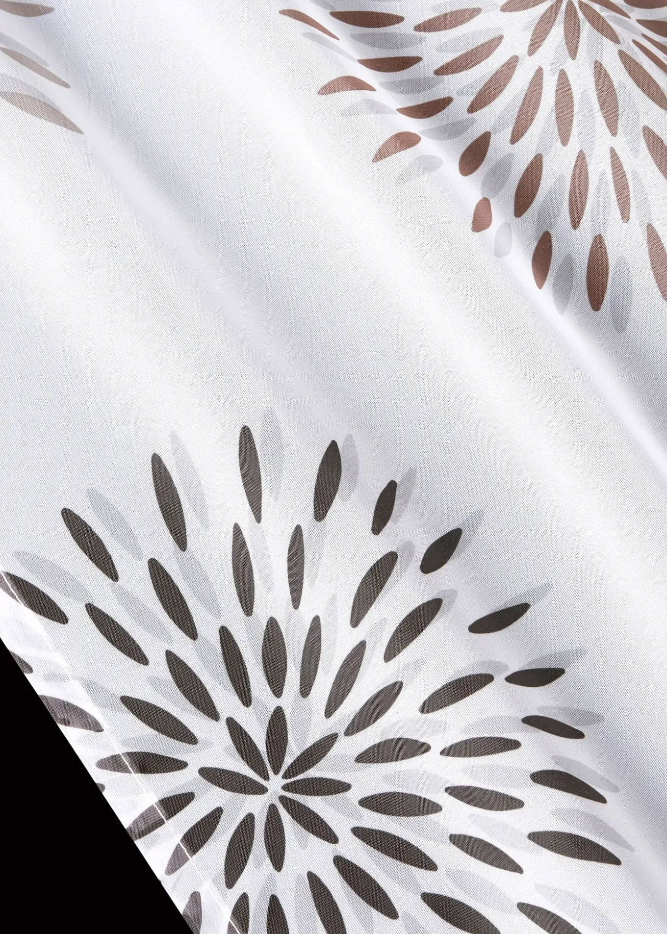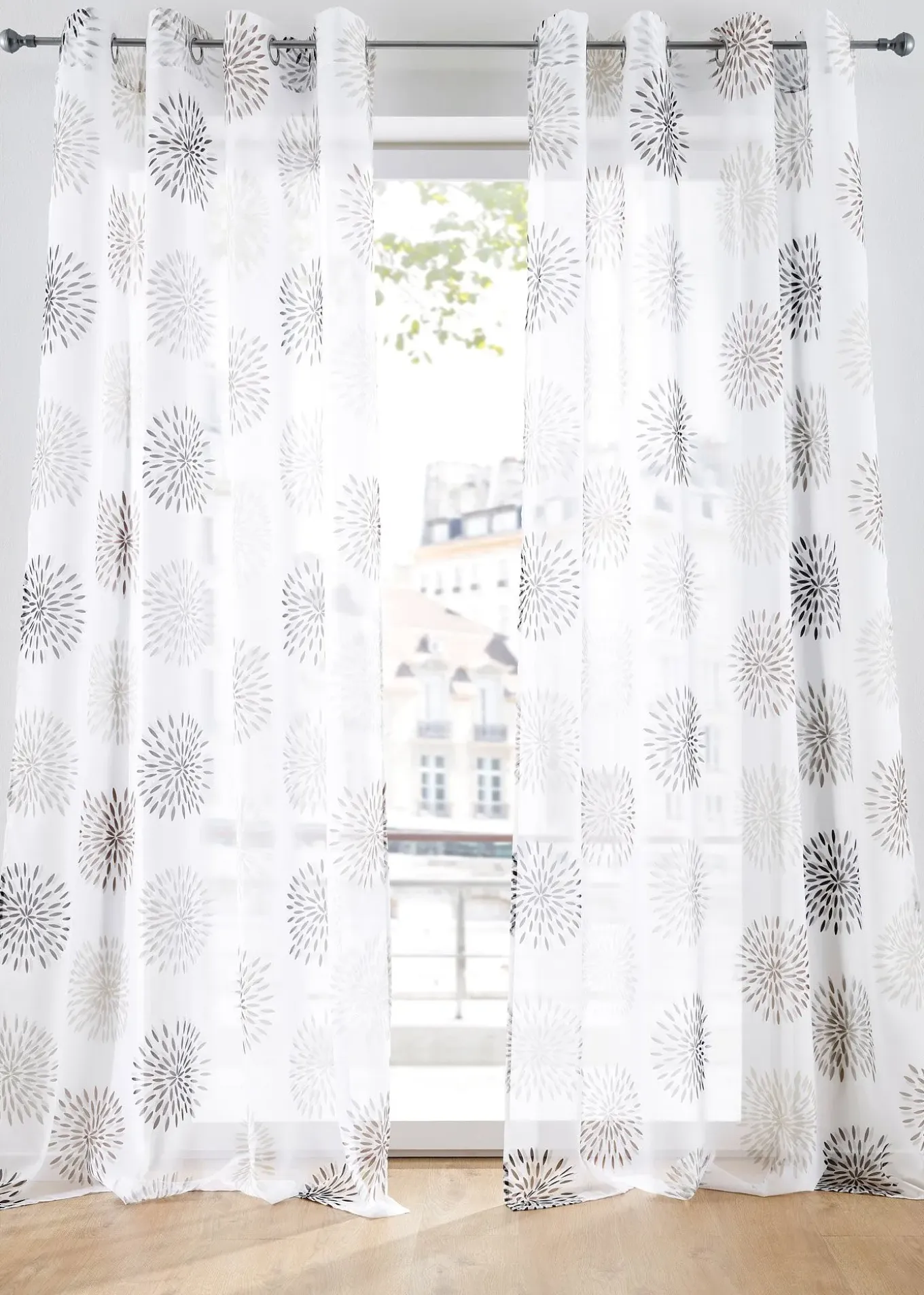 Voilage léger, tranparent et aérien avec un bel imprimé cercles moderne et accrocheur qui vient souligner une déco contemporaine.