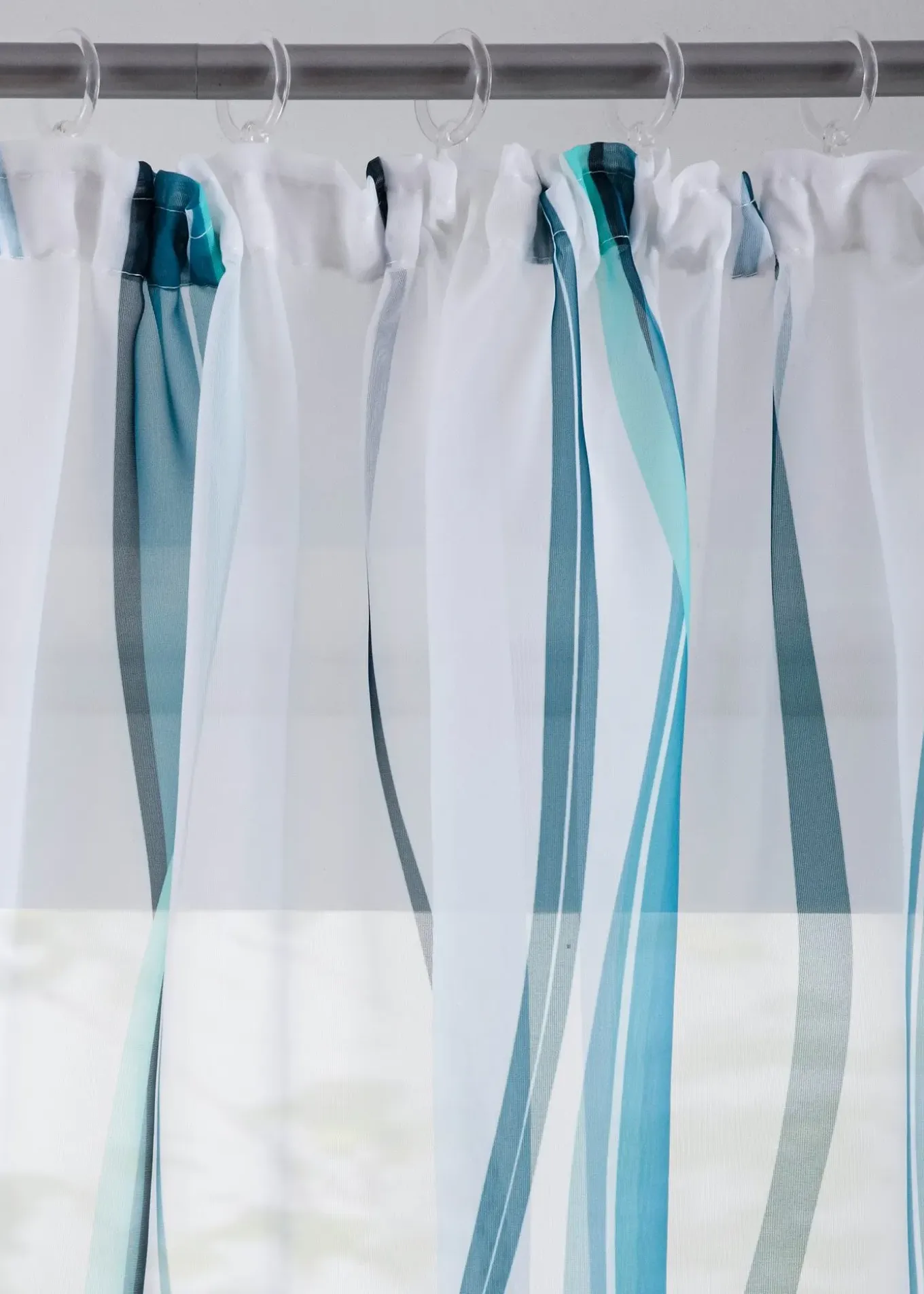 Voilage translucide et aérien à imprimé coloré sur fond blanc ou crème. Très facile à associer avec son motif intemporel qui convient à de nombreux styles d’intérieur.