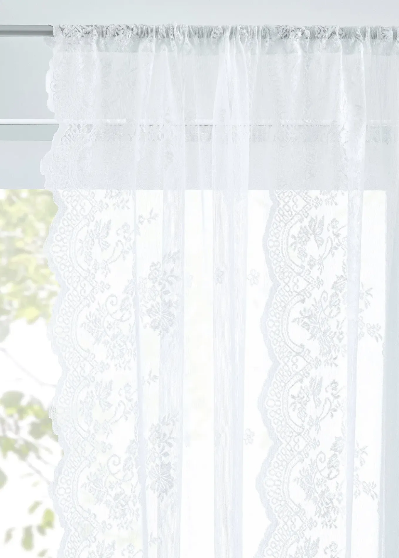 Voilage moderne en jacquard de belle qualité avec base arrondie.